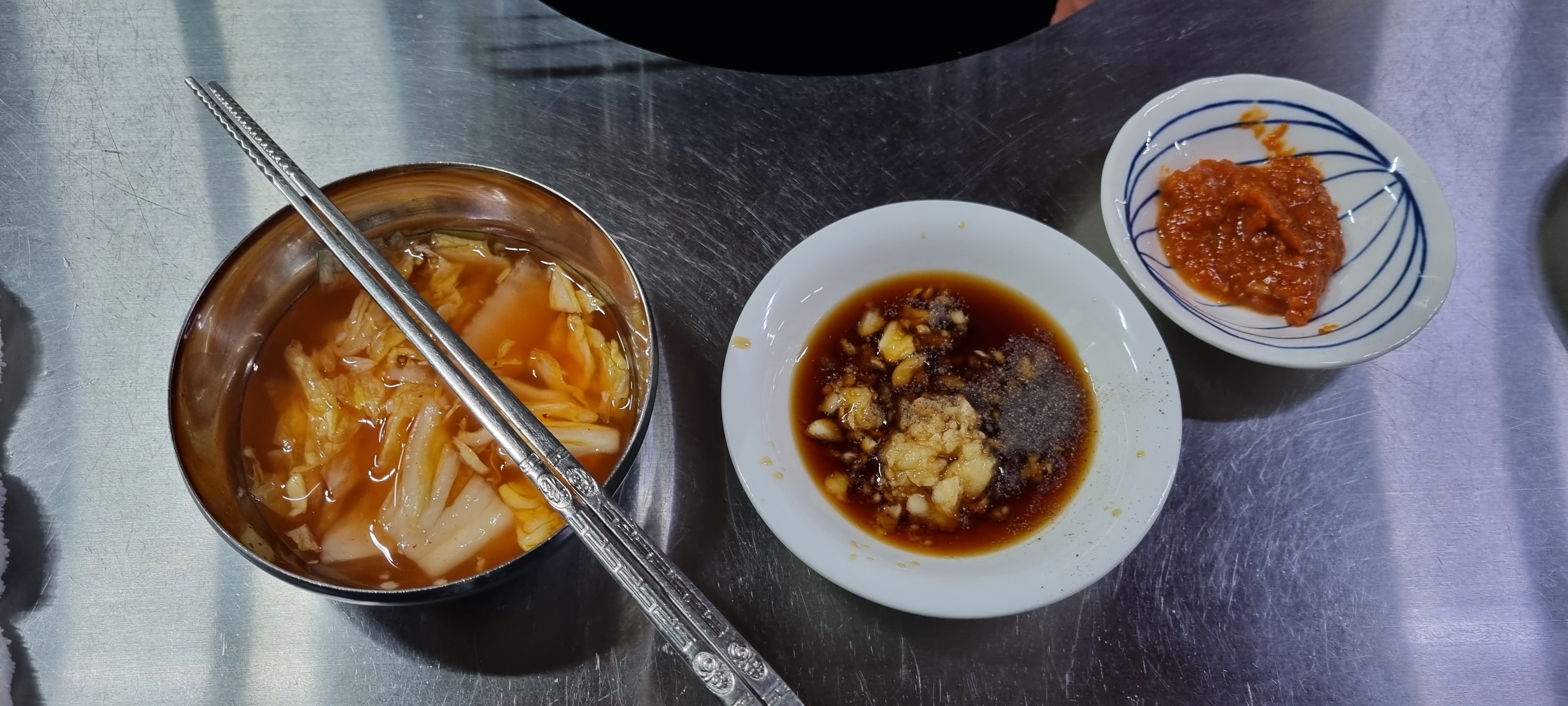 시원한 물김치와 간장소스 쌈장을 내어주십니다